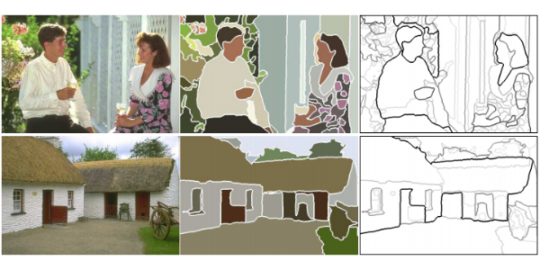 This paper presents a low-level system for boundary extraction and segmentation of natural images and the evaluation of its performance. We study the problem in the framework of hierarchical classification, where the geometric structure of an image can be represented by an ultrametric contour map, the soft boundary image associated to a family of nested segmentations. We define generic ultrametric distances by integrating local contour cues along the regions boundaries and combining this information with region attributes. Then, we evaluate quantitatively our results with respect to ground-truth segmentation data, proving that our system outperforms significantly two widely used hierarchical segmentation techniques, as well as the state of the art in local edge detection.